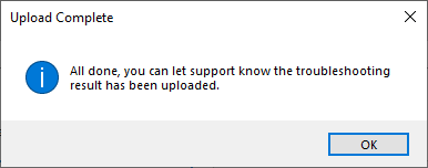 Once you got the confirmation that the support logs have been uploaded: